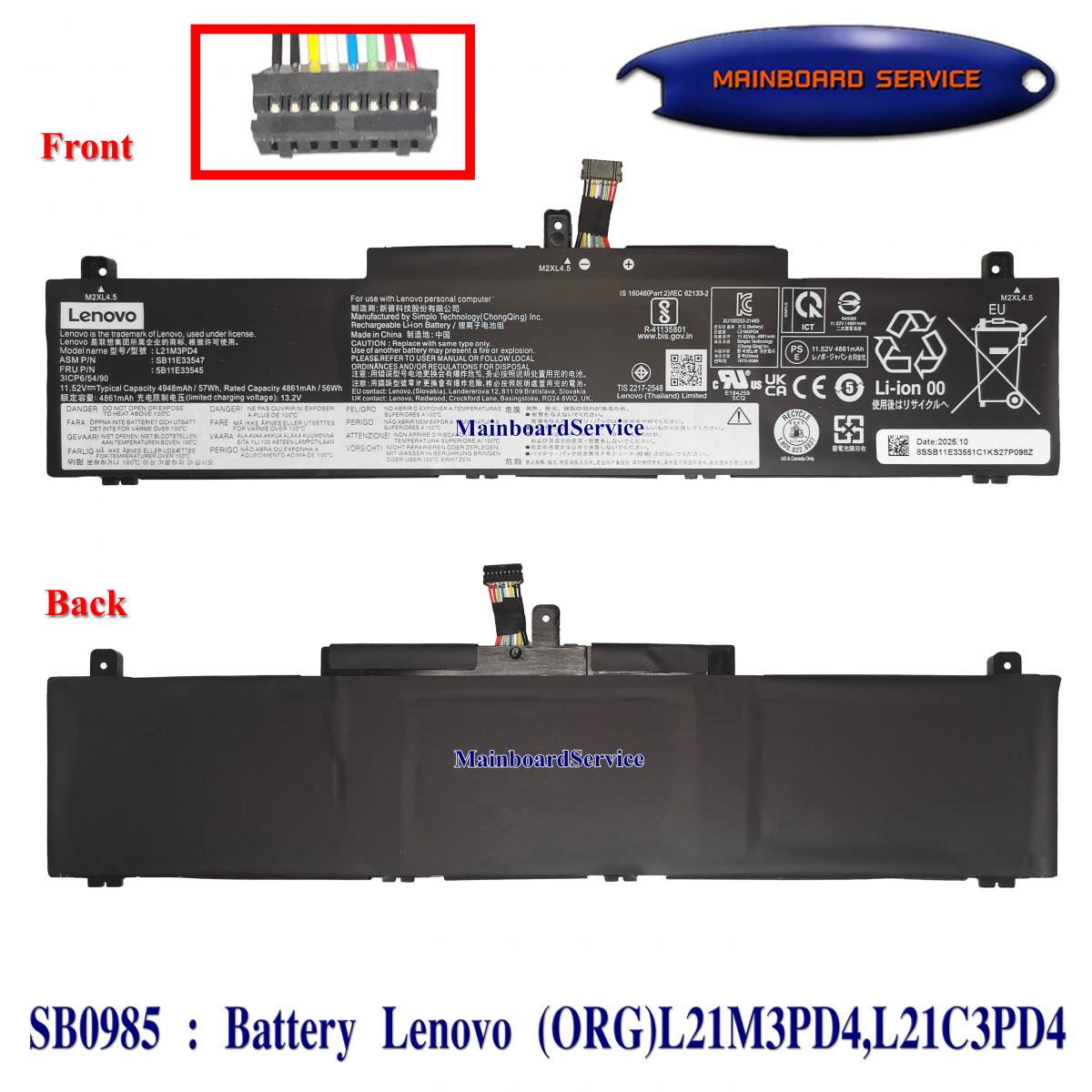 BatteryLenovo(ORG)L21M3PD4,L21C3PD4,L21L3PD4,L21D3PD4,SB11E33547,SB11E33545,31CP6/54/90,