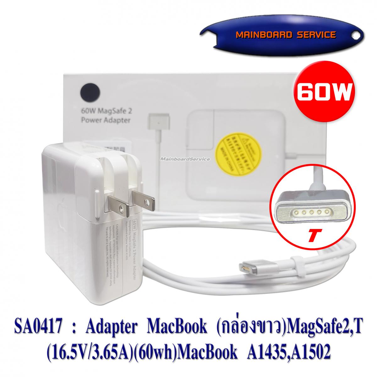 AdapterMacBook(กล่องขาว)MagSafe2,T(16.5V/3.65A)(60wh)MacBook A1435,A1502,MD212LL/A,MD565LL/A,MD662LL/A