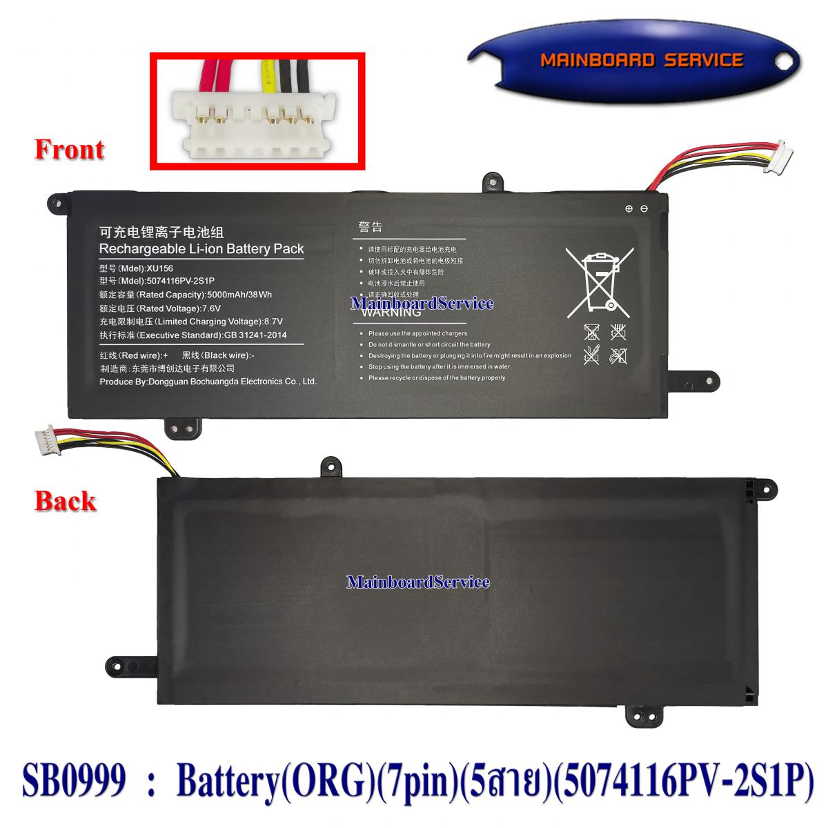 SB0999 : Battery(ORG)(7pin)(5สาย)(5074116PV-2S1P)(GB31241-2014)XU156