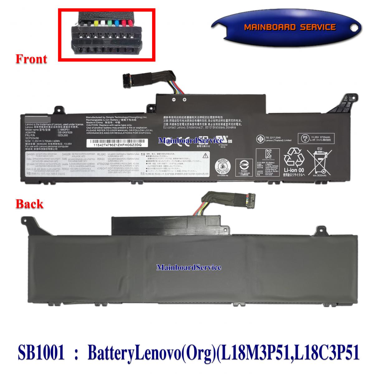 SB1001 : BatteryLenovo(Org)(L18M3P51,L18C3P51,L18M3P52,02DL001,02DL000,E840S,SB10K97640,SB10K97639,SB10K976,