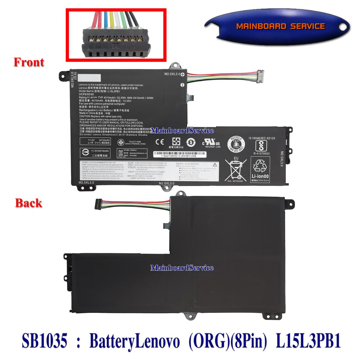 SB1035 : BatteryLenovo(ORG)(8Pin)(L15L3PB1,L15M3PB0,L15C3PB1,L15L3PB0,L14L2P21,320S-15IKB,S41-70AM,IdeaPad300S,500-151BD ,510S-14ISK,